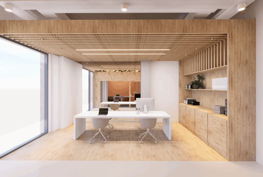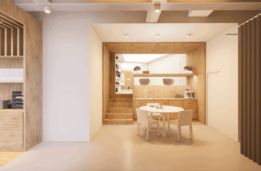 La propuesta reorganiza los espacios interiores para favorecer la claridad, la eficiencia y la comodidad, optimizando la circulación y generando zonas diferenciadas para trabajo individual, reuniones y atención al cliente. Se priorizó la creación de una atmósfera profesional pero cercana, capaz de transmitir los valores de la empresa: seriedad, transparencia y compromiso con la calidad.
